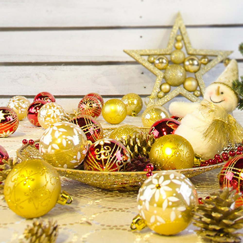 FeiliandaJJ 24PCS 6CM Weihnachtskugel Boxed Gemalt Kugel Weihnachten Deko Anhänger Christbaumkugeln für Weihnachtsbaum Party Home Hochzeit Gold Küche, Haushalt & Wohnen Weihnachten Weihnachten Kugeln
