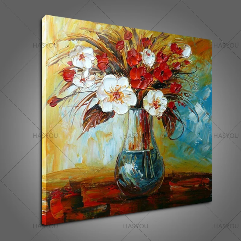 Nuevo estilo 100% pintado a mano abstracto moderno acrílico flores paleta cuchillo pinturas al óleo en lienzo arte de pared para el hogar decorativo|knife oil painting|oil paintingpainting styles - AliExpress