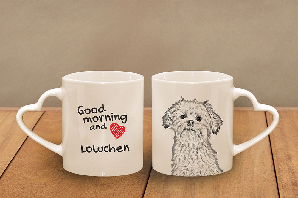 Löwchen - mug with a dog - heart shape . Good morning and love... High quality ceramic mug. Dog Lover Gift, Christmas Gift