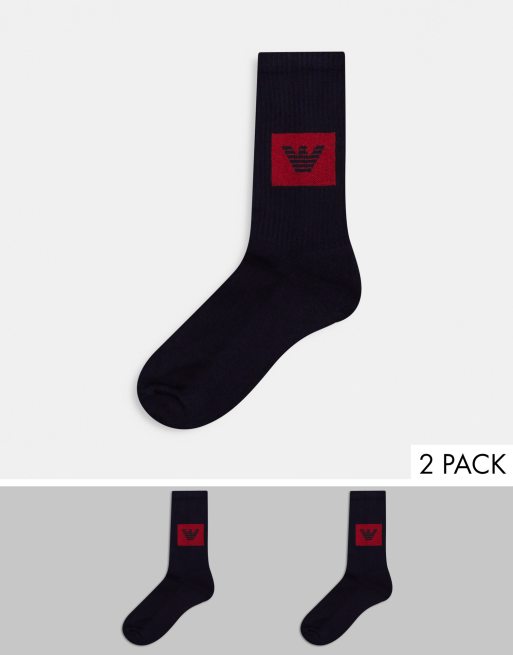 Emporio Armani 2 Pack Square Eagle Logo Sports Socks In Navy Asos
